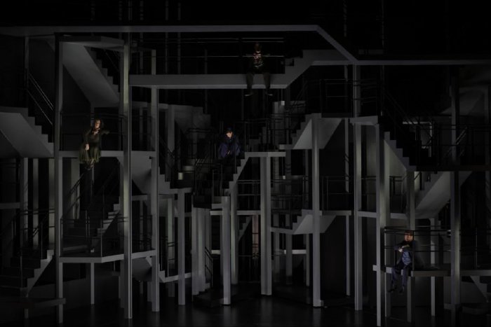 En el primer acto ocupó el escenario con unas escalinatas que recordaban a las de Escher, infinitas y que no conducían a ninguna parte, aunque en el programa especifican que se inspiraron en “Il ponte levatoio” de Giovanni Battista Piranesi. Esas escaleras, que se mueven y separan a los amantes, son sin duda un grandísimo logro (estético y técnico) y encajan a la perfección con la idea de que la pareja, no sólo se encuentran perdidos en el mar de sus sentimientos, sino condenados a estar separados. Es muy largo describir todos los detalles que se perciben en el teatro, por eso sólo destacaría de la dirección de actores, por el anhelo irreprimible de Isolda hacia Tristán, buscándolo con la mirada, las manos, la boca, mientras él hace grandes esfuerzos por controlarse. Con la llegada a Cornualles la desesperación aumenta en Tristán, quien sabe que debe dejar a su amada en brazos de otro hombre; ahí estallan las pasiones y dejan de disimular; ¿para qué sirve el filtro? para nada, esto lo sabemos todos, de tal forma que vierten su contenido sobre el escenario y dan rienda suelta a su pasión, mientras Brangania y Kurwenal tratan violentamente de separarlos.